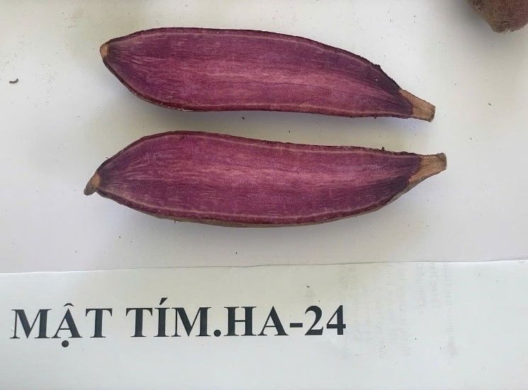 - Vỏ củ có màu đỏ tím, ruột củ màu tím, dạng củ tròn dài