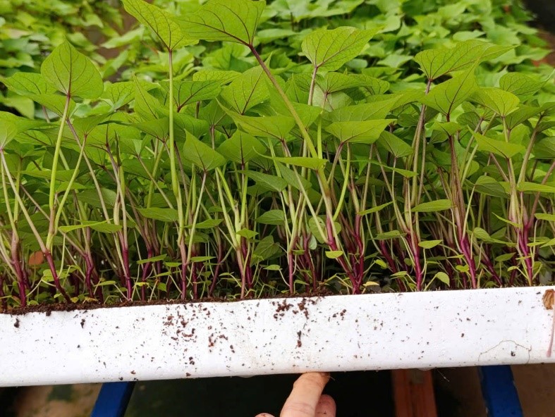 - Có dạng thân bò, màu sắc thân xanh hơi tím, lá hình tim rộng.