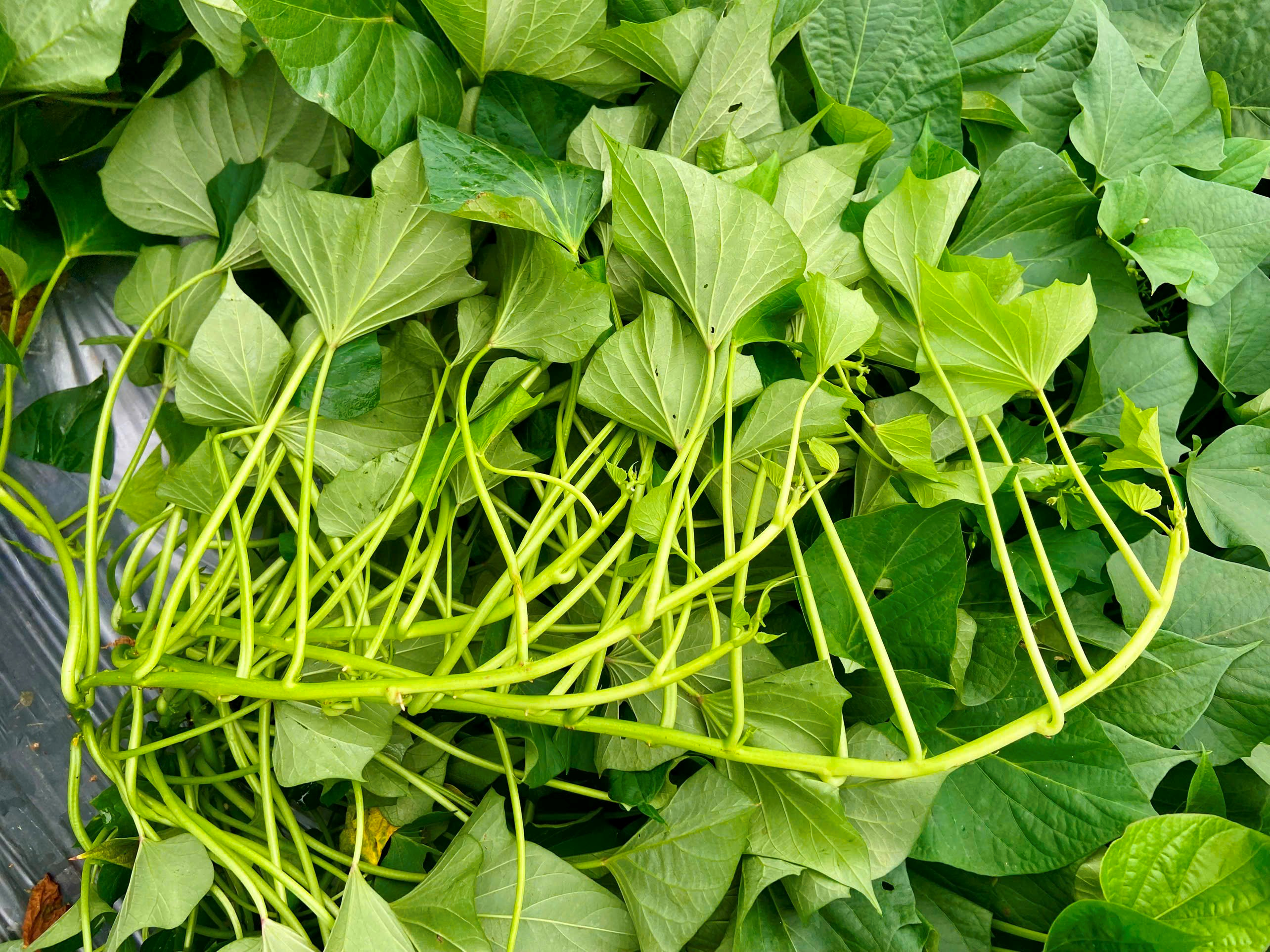 - Có dạng thân bò, màu sắc thân xanh, lá hình tim rộng.